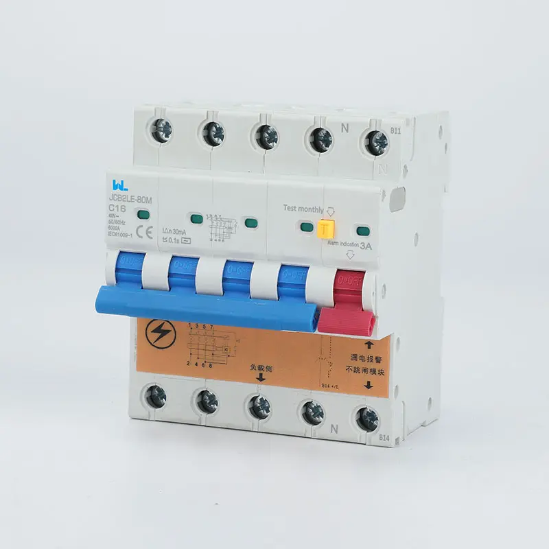 The JCB2LE-80M RCBOs (residual current circuit breaker with overload protection) with Alarm are suitable for circuit monitoring, it is convenient for customer to check earth fault and make you more safety.