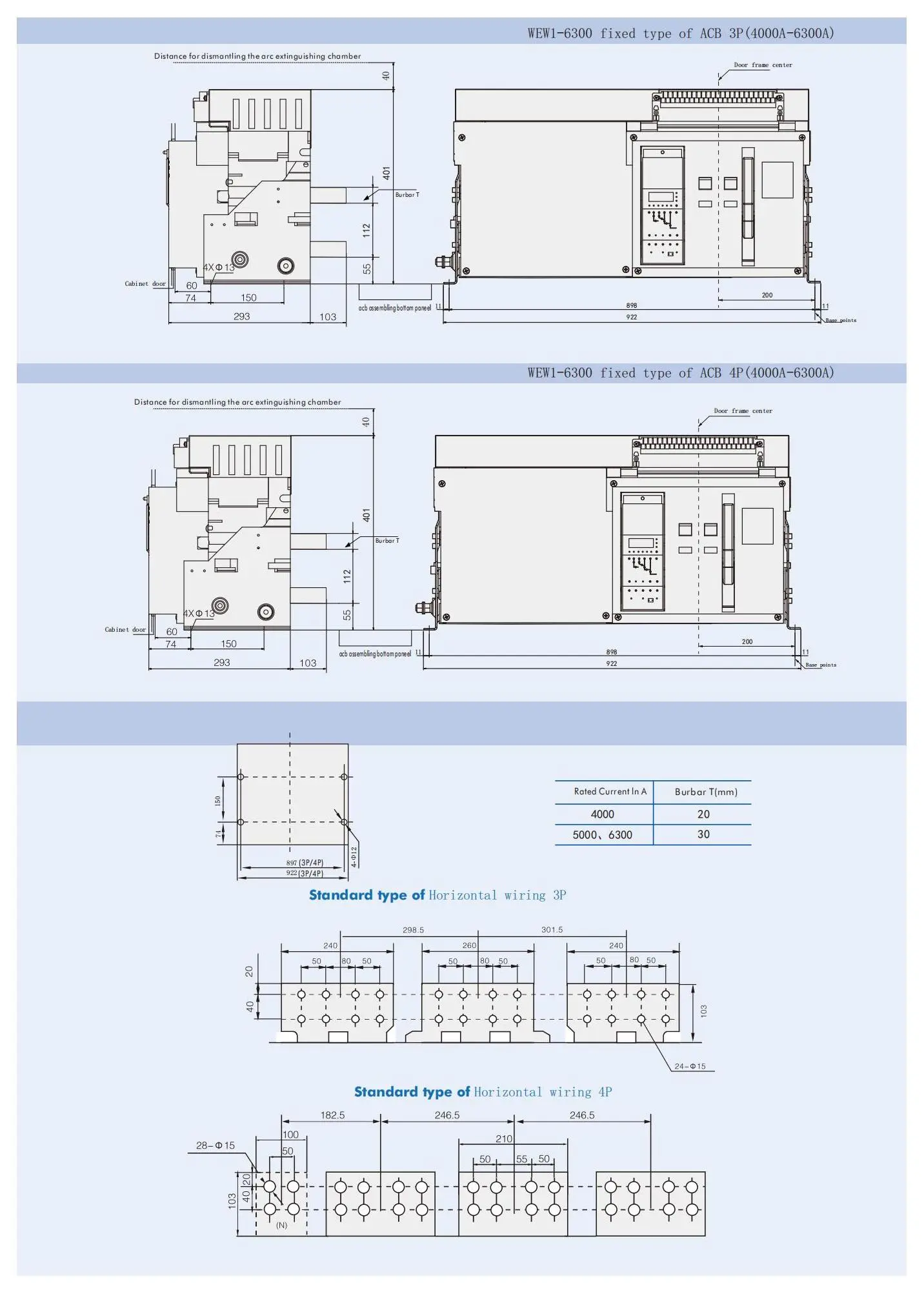 Air circuit breaker WEW1-6300 air Circuit Breaker withdrawable type acb fixed type type Switch 400VAC/690VAC 6300A 3/4p acb