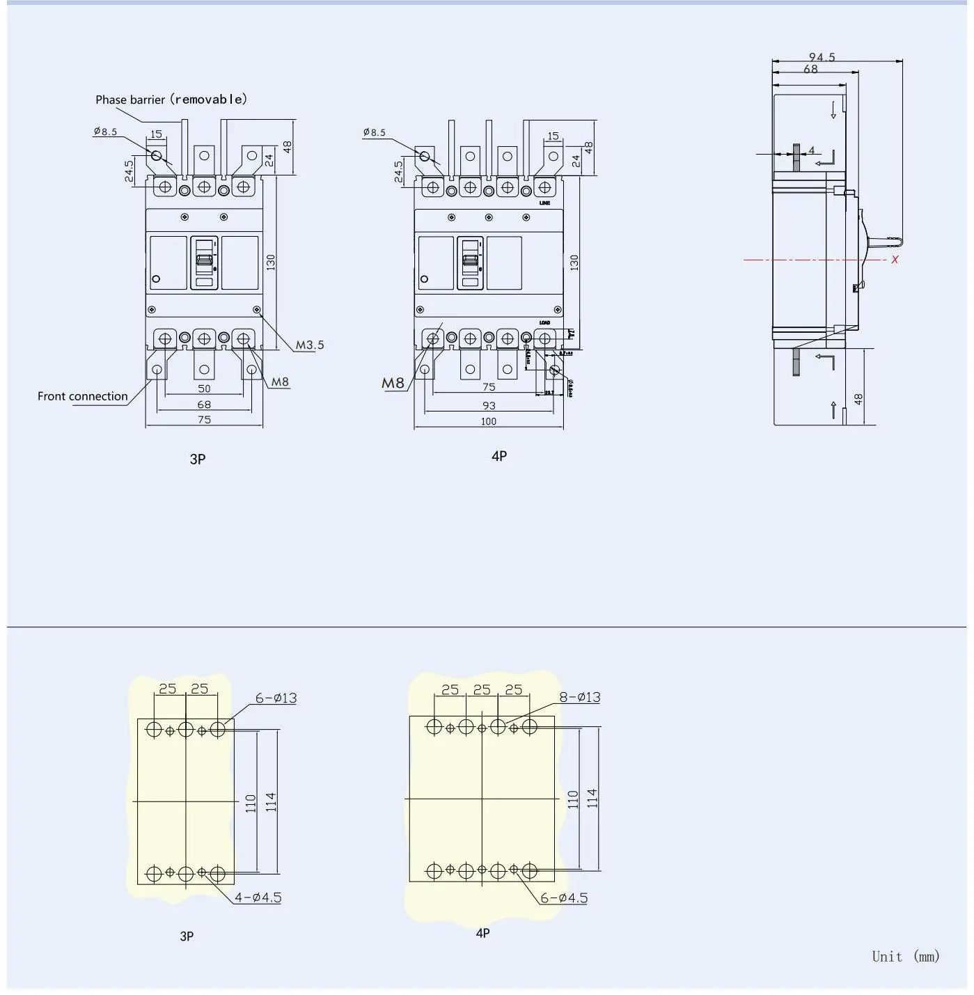 3. The circuit breaker has passed the test requirements of IEC60947-2 and can withstand the influence of humid air, salt mist, oil mist and mold.